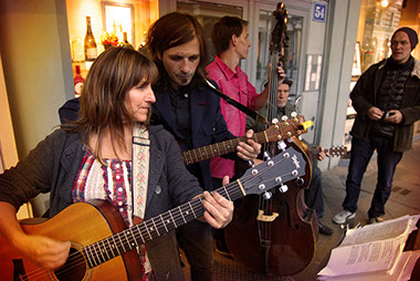 Jenny & Friends unplugged vor der Frankenwein-Vinothek Bocksbeutel, Colonnaden 54, 20354 Hamburg am 27.09.2015